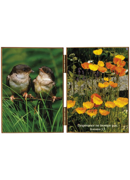 Panneau gauche : Cimes et Lumières Le Mont-Blanc - Panneau droit : une citation du Livre d'Isaïe (Ref D144B) Référence: D144BDiptyque Fillette chargée...