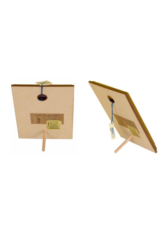 Icon mounted on carved, varnished support - fit for hanging on a wall, or resting on a table. This hole is notched to facilitate its centering.For the format M7076DF see the easels HCPL1 or IKN02-sB10