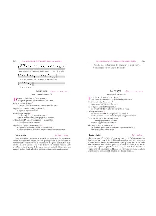 Sur la page de droite : traduction officielle de la Liturgie des Heures en français.