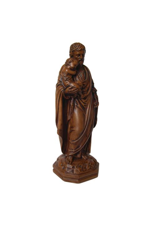 Estatua de San José con el Niño Jesús. Altura : 38 cm - Materia : Alabastro reconstituida - Medidas : diámetro del zócalo 13,8 cm - Color : blanco Referencia: STA38JHSan José 60 cm (mármol...