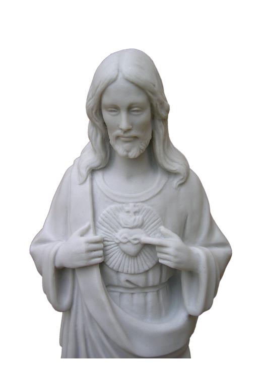 Description Statue du Sacré-Coeur en marbre reconstitué, 37 cm