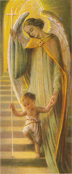 - Il est important que l'enfant dès qu'il peut apprenne l'existence de l'Ange gardien. L'image religieuse est beaucoup plus parlante pour son jeune âge que tout discours. Dans ces conditions la représentation d'un enfant se justifie totalement.