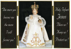 Cette croix Sauvegarde se trouve parfois assemblée à la couronne ou chapelet de l'Enfant-Jésus composé de 15 grains dont 12 en l'honneur des mystères de l'Enfance. Pour cette raison cette couronne est appelée chapelet de l'Enfant-Jésus de Prague. Mais c'est une appellation inexacte, car ce petit chapelet du saint Enfant-Jésus a été donné par Jésus lui-même à la vénérable Soeur Marguerite du Saint Sacrement carmélite de Beaune (1619 - 1648) et il est tout à fait indépendant de l'Enfant Jésus de Prague. Nous aurons l'occasion de parler plus longuement de cette vénérable et de la dévotion au saint Enfant Jésus, le Petit Roi de Grâce, qui a une origine surnaturelle.