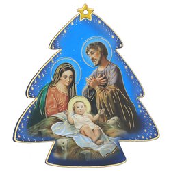 Ikoon van Geboorte in de vorm van dennenboom, blauwe achtergrond